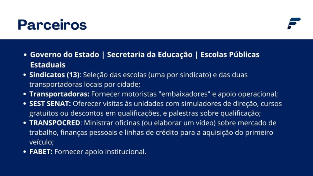 Fetrancesc e Governo do Estado também são parceiros no Programa CNH Emprego na Pista, outra iniciativa voltada à oferta de mão-de-obra para o transporte.